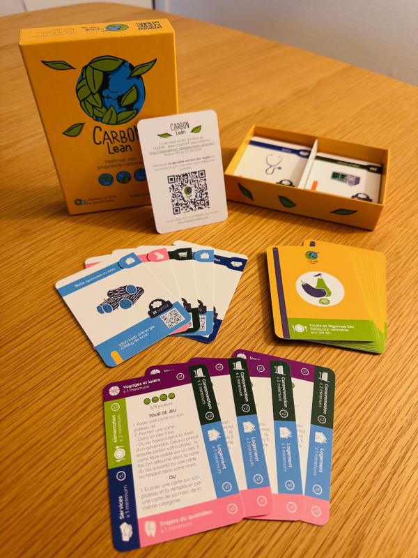 Dans Carbon Lean, vous représentez un citoyen, ayant la capacité de “consommer” différents produits, biens et services. Chacun d’eux ont un “coût carbone” en émissions de CO2 – calculé en Kilos Equivalent CO2 (kgCO2) selon des chiffres officiels et référencés.Votre objectif est de diminuer votre “bilan carbone total” en choisissant les produits, biens et services qui consomment le moins par rapport aux autres joueurs !